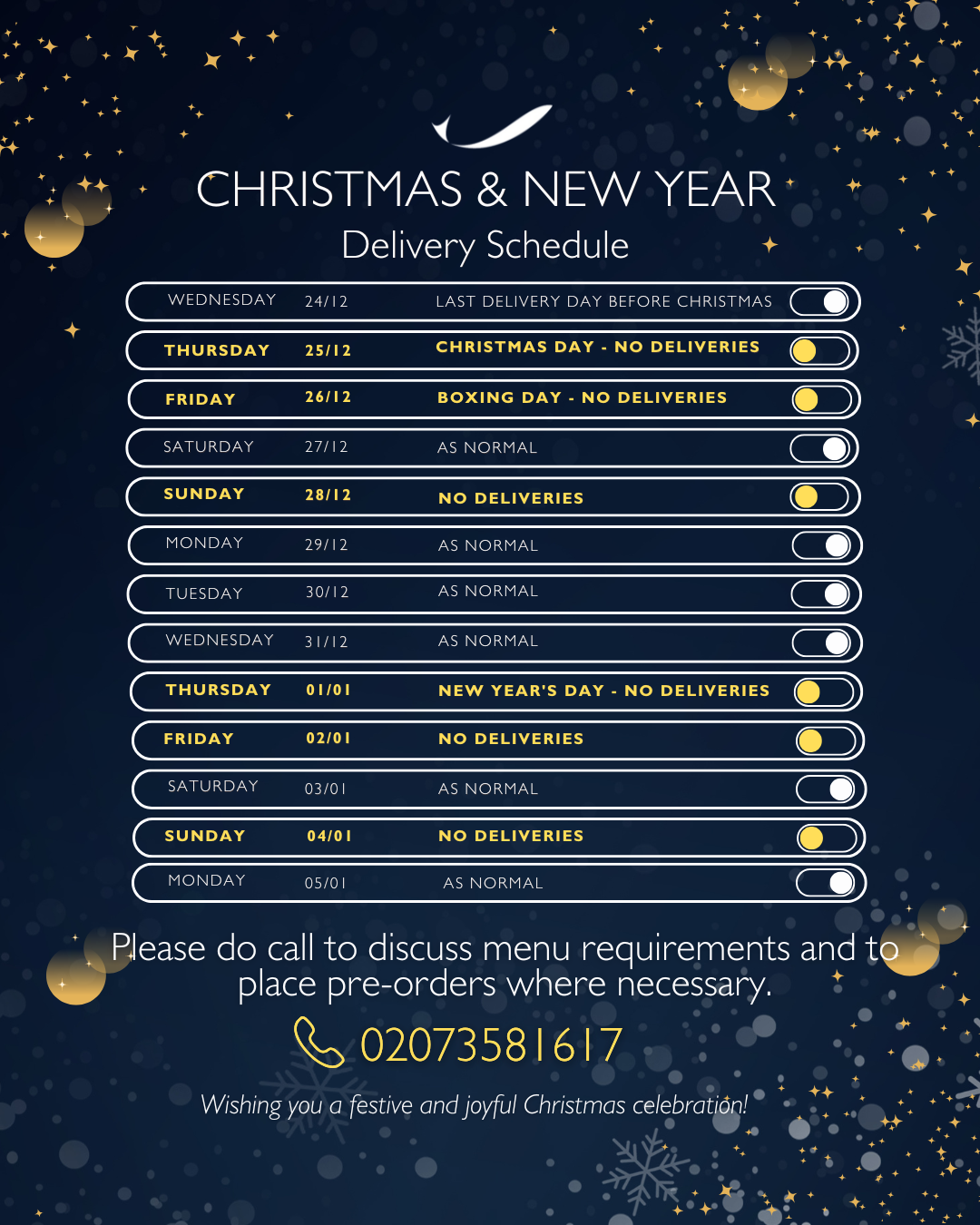 Christmas is fast approaching and it’s the perfect time to share our festive delivery schedule. Please be aware that fish