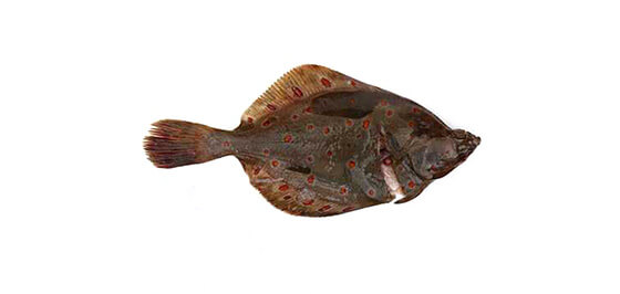Plaice are right-eyed flatfish with distinctive orange or red spots on smooth brown skin and 4-7 bony knobs between their eyes.